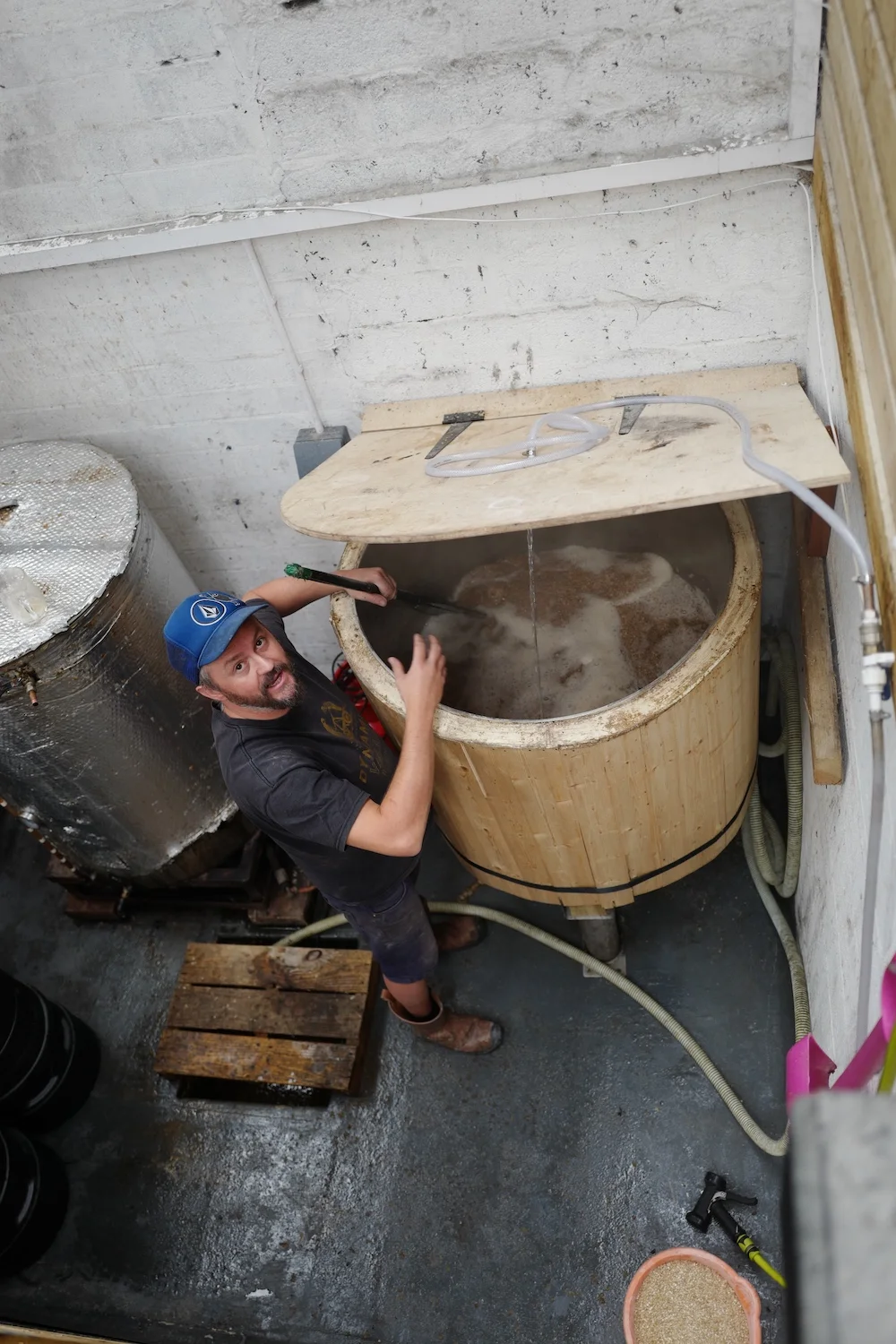 I arrived at Doms just before 8am. The tun was already being filled with hot water ready for the first brewing stage of the day. The first thing that hits you is the overwhelming smell. that brewing smell of hops. Another deep breath was in order. My visit to the brewery would turn out to be somewhat of an education in the art of brewing. I knew nothing of the brewing process prior to my visit other than some of the ingrediants that generally go into beer. Dom would run through the whole process for me that morning but I must admit I did get a little lost with the chemistry of it all. Sugars, yeast levels, ABV. All very puzzling at first but as the day unfolded I began to know a little more about making beer. Well, I think I did.