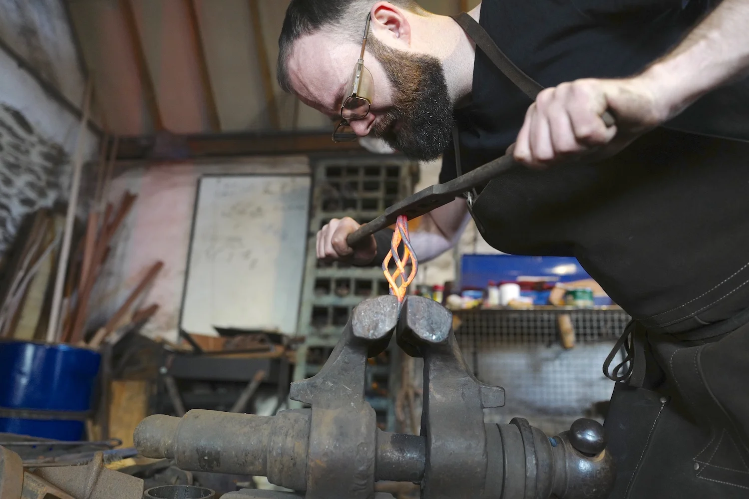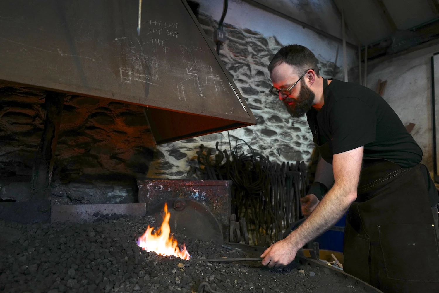 Steven hasn’t been a Blacksmith all of his life. He followed a different career path first by going to Uni to study Psychology. After leaving Uni, he worked in the private sector but the recession hit and he unfortunately got made redundant, so he moved back to Ireland. He refocussed on his future and thought that Blacksmithing would be an interesting route to follow. He found the right course, got accepted and spent the next 3 years studying. He graduated with a distinction, ending up with the Certificate of Competence from the Worshipful Company of Blacksmiths.